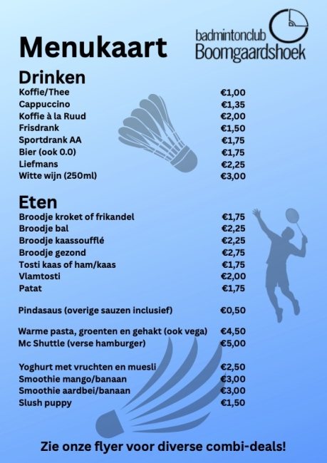Benieuwd wanneer je moet spelen of wat er op het menu staat?