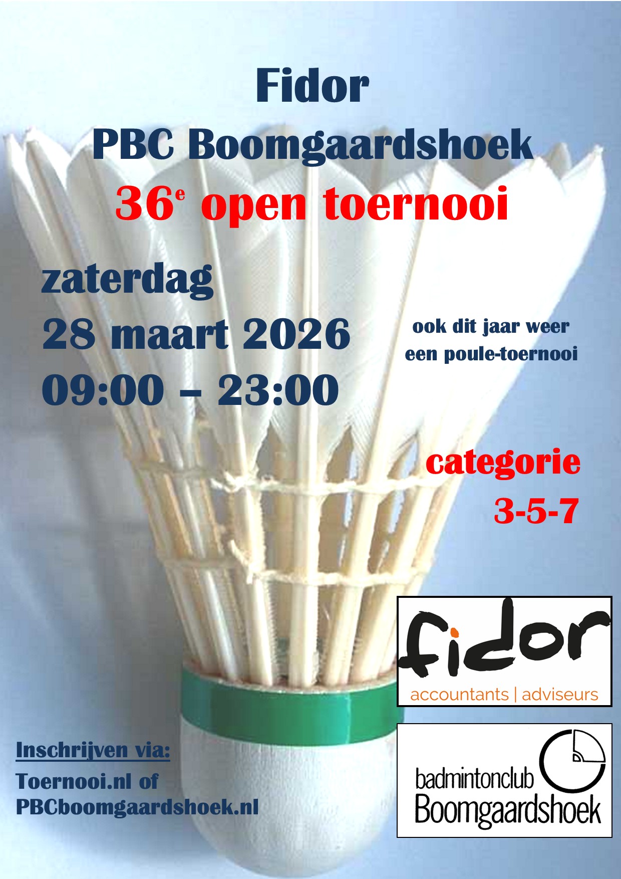 Als je vragen hebt, dan kun je deze mailen naar toernooi@pbcboomgaardshoek.nl.