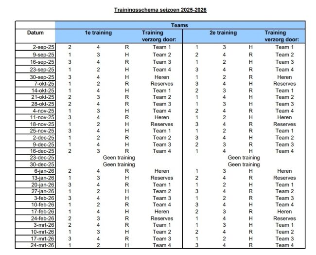 Trainingsschema voor competitiespelers 2025-2026